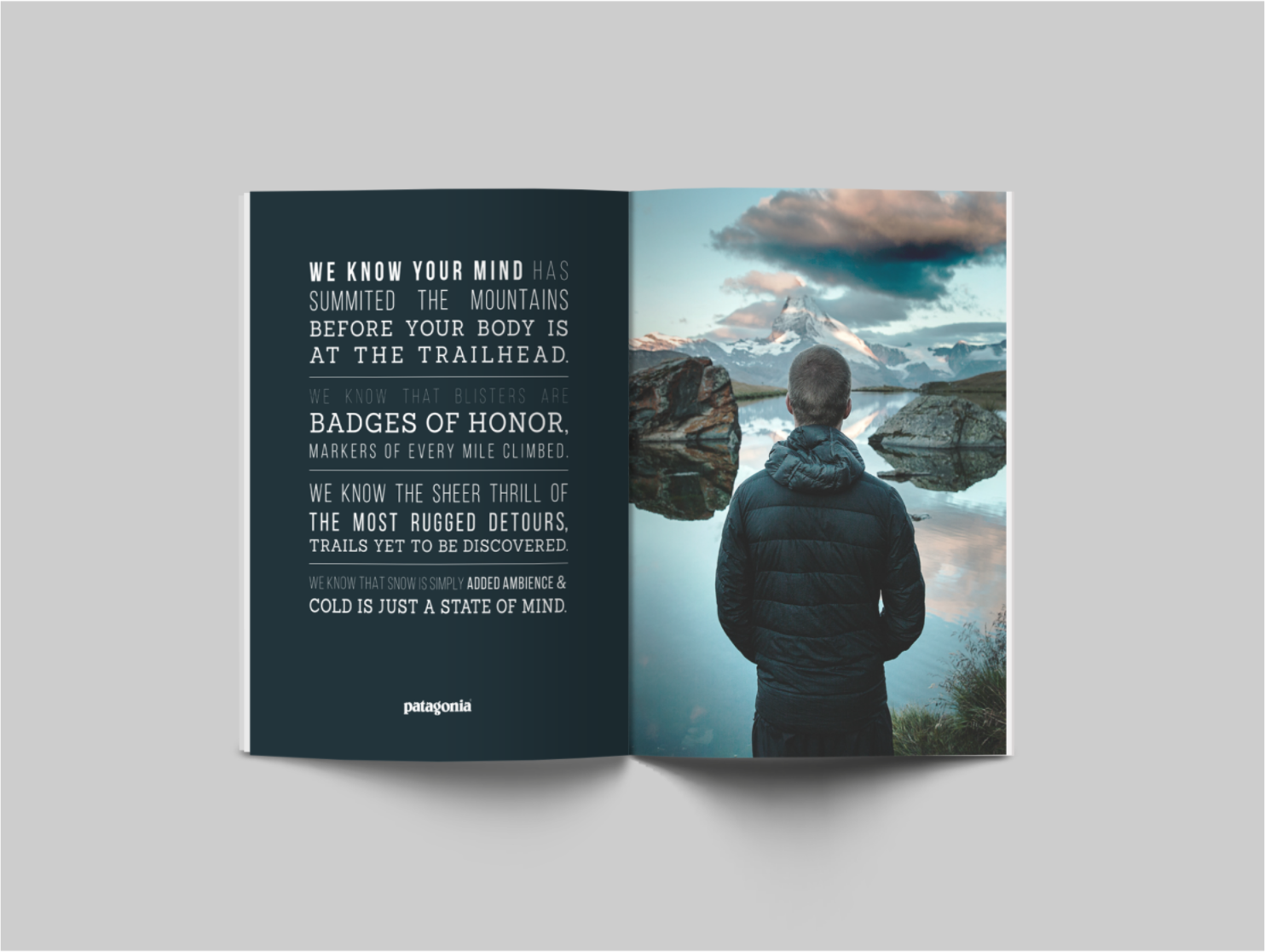 There are people who see the top of a mountain as a sanctuary and riding a wave as a religious experience. With these manifestos I wanted to capture that indescribable feeling that pulls hikers to the mountains and surfers to the shore.
